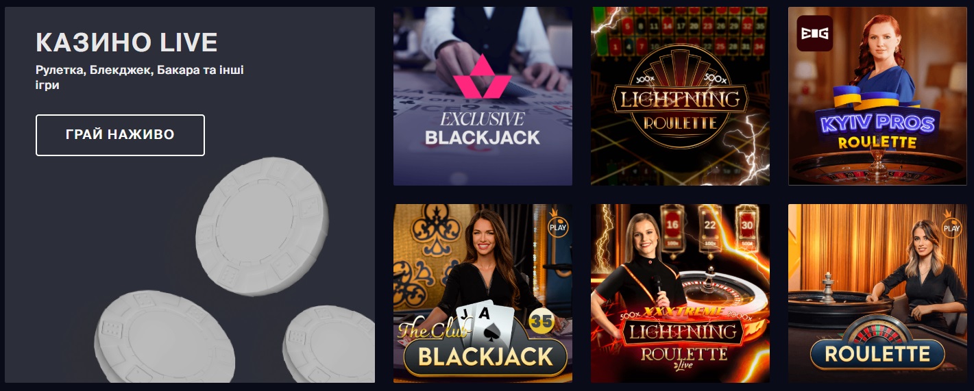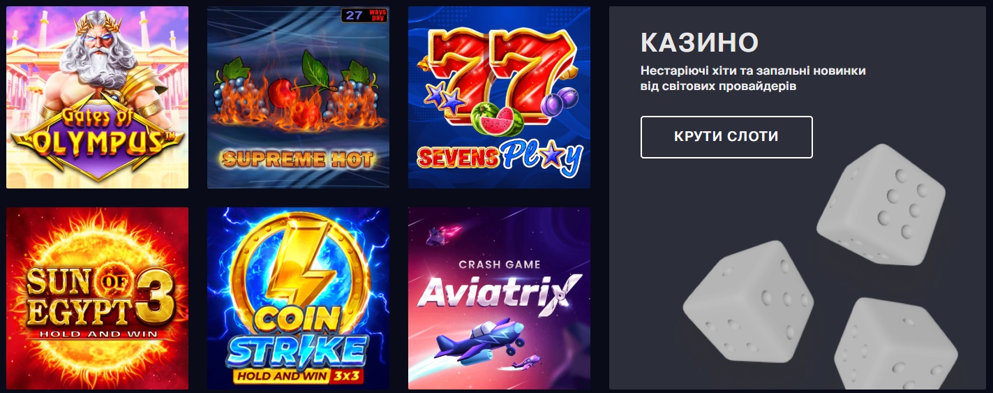 - Широкий вибір ігор: Всього на сайті понад 1000 ігор від різних провайдерів
